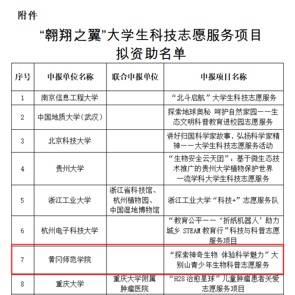 我校科普项目获准中科协“翱翔之翼”大学生科技志愿服务项目立项