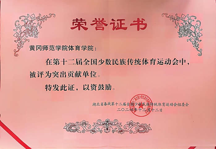 五、我校原创项目《顶瓜瓜》代表湖北省参加中华人民共和国第十二届少数民族传统体育运动会,荣获表演项目技巧类一等奖,体育学院获评湖北省突出贡献单位。